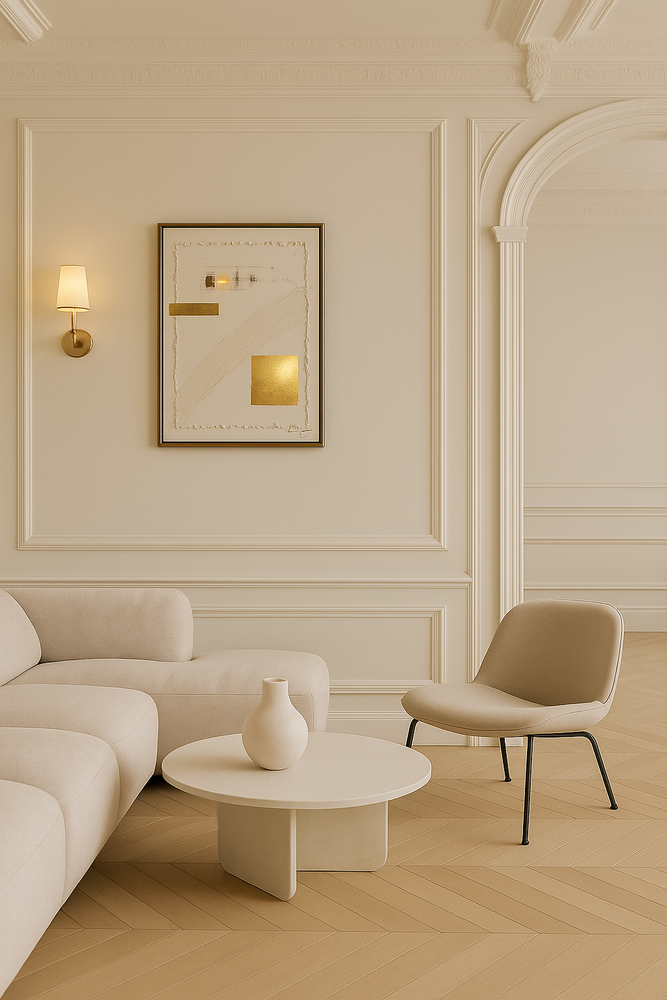 The painting comes with a wooden frame in a gold tone, featuring a gently aged, antique-style finish.