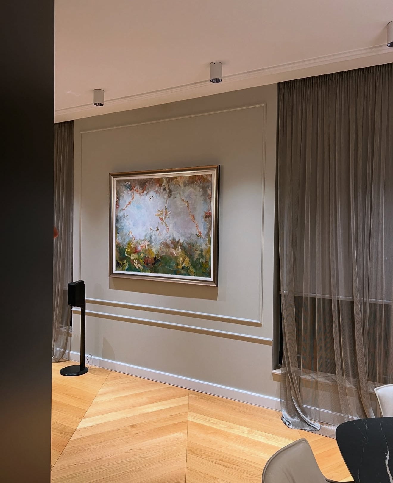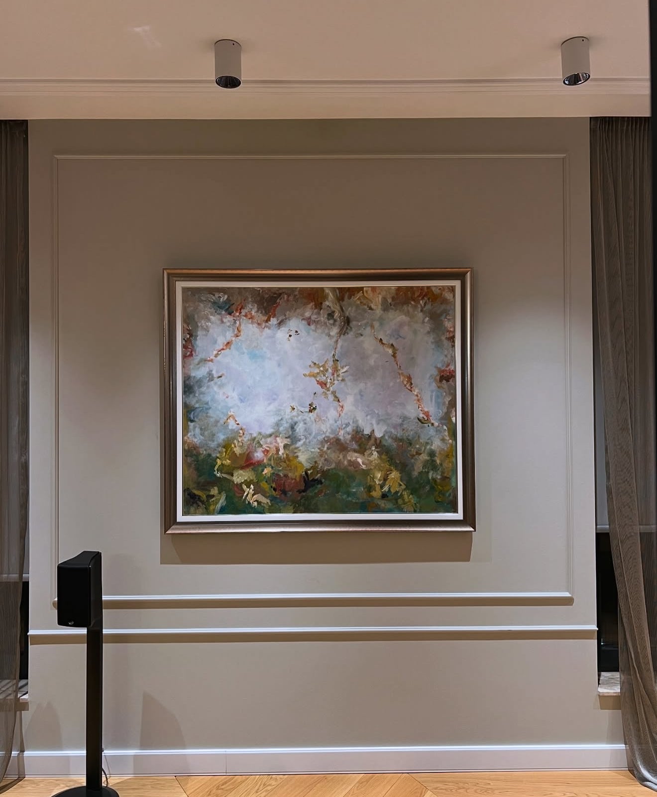 The painting on the picture is with dimensions: 120X100 cm (47,2x39,4 in) and is already sold out.