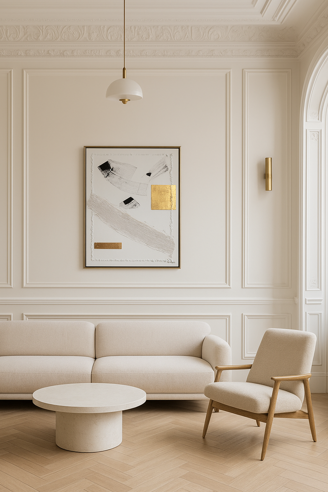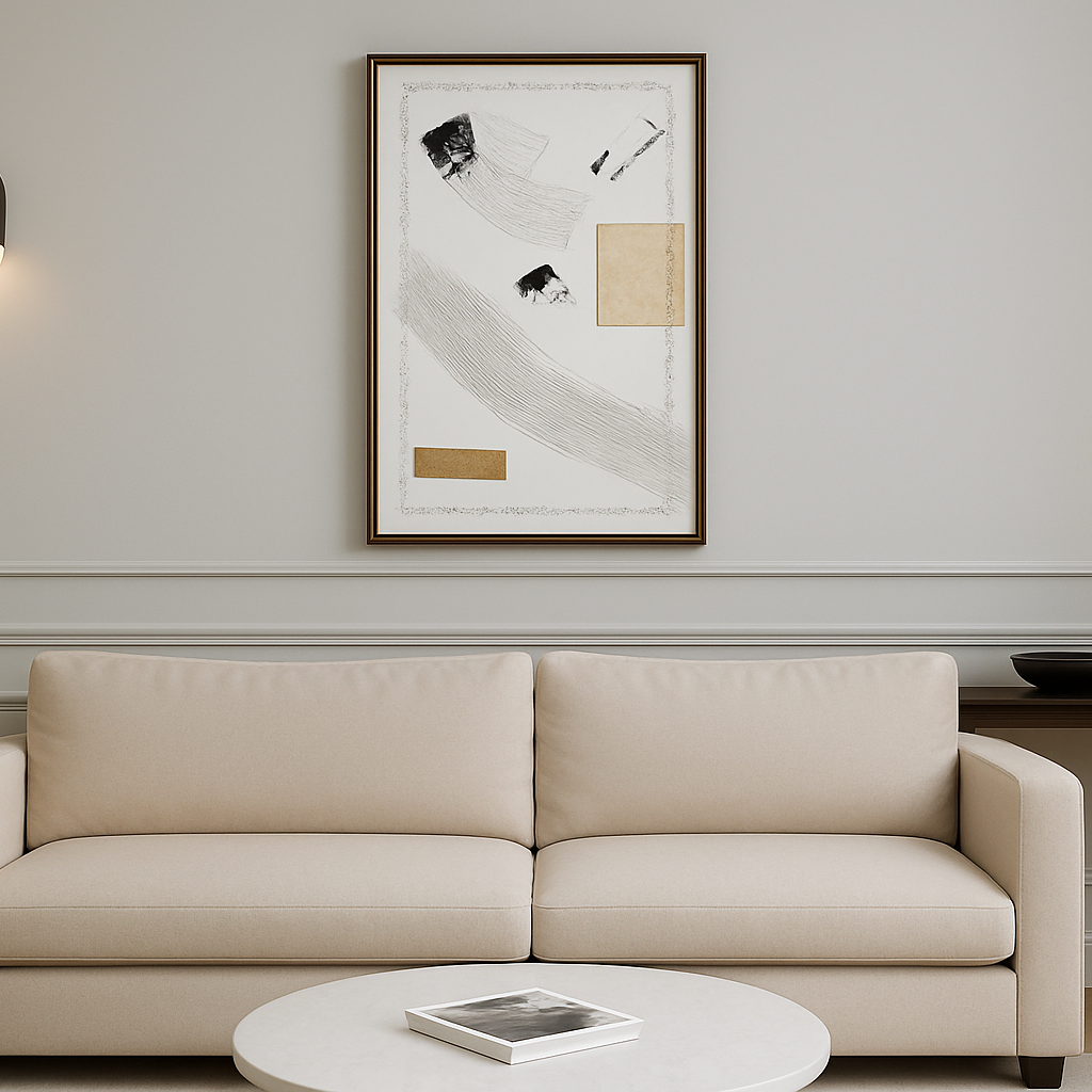 The painting comes with a wooden frame in a gold tone, featuring a gently aged, antique-style finish.